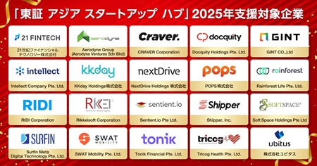 東京証券取引所(以下「東証」)は、2025年9月25日に「東証 アジア スタートアップ ハブ」の2025年支援対象企業として20社を選定(うち、新規7社、再選定13社)いたしました。
