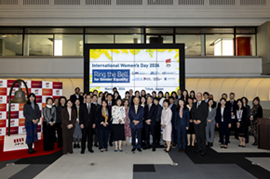 国連により3月8日は「国際女性デー」と定められており、毎年、世界の取引所では打鐘セレモニー「Ring the Bell for Gender Equality」が開催されています。今年も主催団体とJPX役職員により打鐘セレモニーを実施しました。