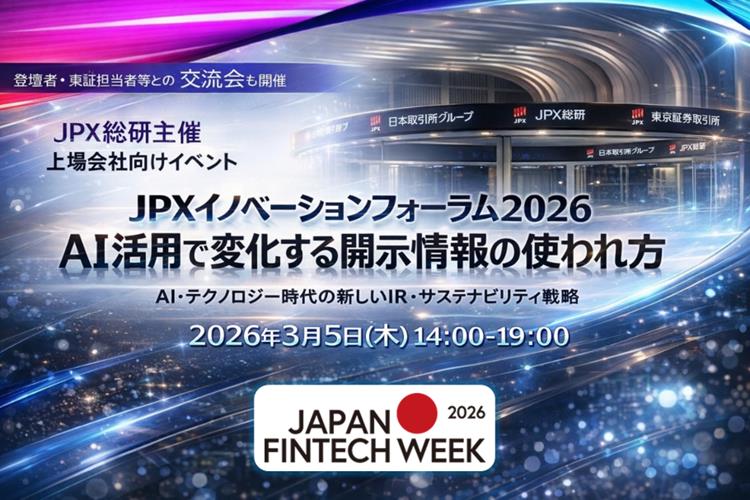 先般、JPX総研は、上場会社の皆様に対し、AI・テクノロジー時代における投資家の本音やデータ評価の裏側などのご紹介を通して、より良い情報発信へのヒントを得られる機会を提供することを目的としたイベント、『JPXイノベーションフォーラム2026:AI活用で変化する開示情報の使われ方』を2026年3月5日(木)に開催することをお知らせしております。