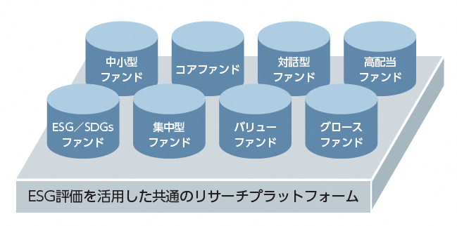 そして、当社の国内上場株式のアクティブファンドは全て、ESG分析を活用して算出した企業価値を投資判断に活用しているため、全アクティブファンドにおいてESGをインテグレートしています。さらに、ファンドによっては、ESG評価を活用したポジティブ・ネガティブスクリーニングを実施しています。
