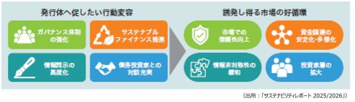 - 調達方針や情報開示の質、財務制限条項の設計、リスク管理体制、資金使途の透明性、外部レビューの取得状況など、債券投資家ならではの視点を交えた多角的な対話を通じて、企業の行動変容を促し、信用力の向上と市場の健全性の確保を目指しています。