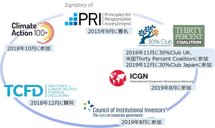 GPIFは、2015年9月にPRIに署名したのを皮切りに、以下の国際的なイニシアティブに参加しています。