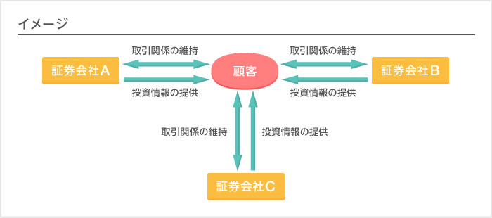 また、ギブアップ制度を利用することにより、顧客は、上記利益を新たに享受しながら、従来どおり、複数の取引参加者と取引関係を維持することにより、当該取引参加者から有益な情報を獲得することができます。