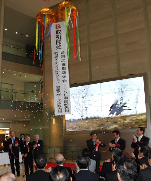 A Ceremony was held on July 19th, 2016, celebrating the introduction of new derivatives trading platform "J-GATE" and new four products at the atrium on the lobby floor of Osaka Exchange.