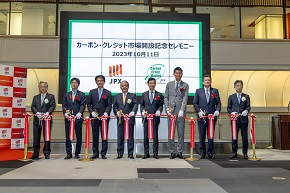 Tokyo Stock Exchange (TSE) opened the Carbon Credit Market on October 11, 2023. To commemorate the opening of the Market, a ceremony was held on the same day, which was attended by Mr. Nishimura Yasutoshi, Minister of Economy, Trade, and Industry (METI), and other ministries and organizations involved in carbon credits.