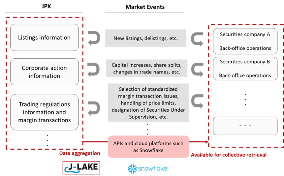 To address these issues, JPXI is considering the development of a common data platform that aggregates wide-ranging data held by securities-related institutions and provides it in a format suitable for automated processing. We are exploring a variety of options for how to provide this data, including distribution via APIs and cloud platforms such as Snowflake.