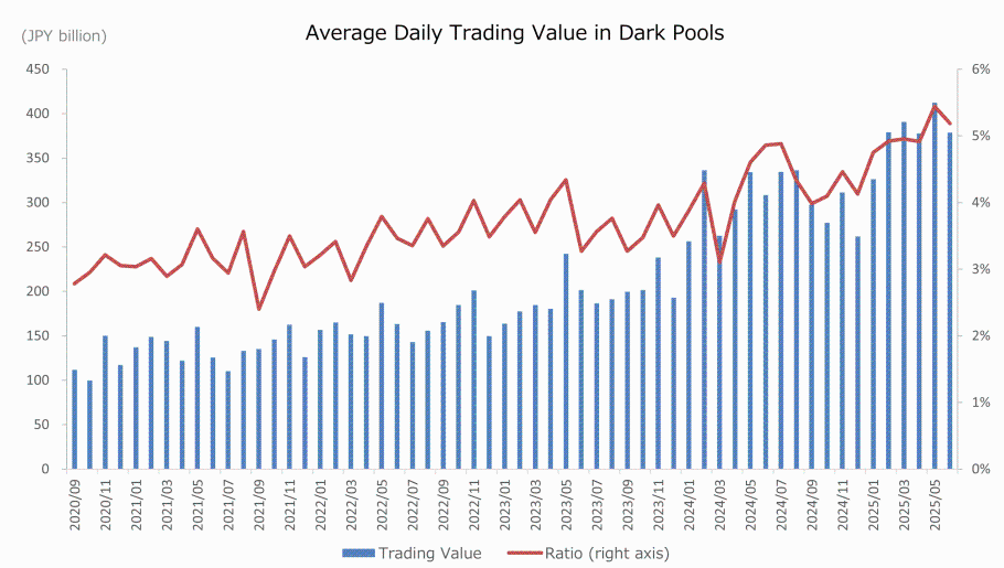 Based on this flag system, we have compiled a summary of the changes in trading value in dark pools (September 2020 to June 2025), as follows: