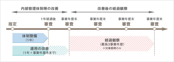 | 内部管理体制等が適切に整備されていると認めるものの、適切に運用されていると認められない場合(適切に運用される見込みがある場合に限る) | 指定継続 |