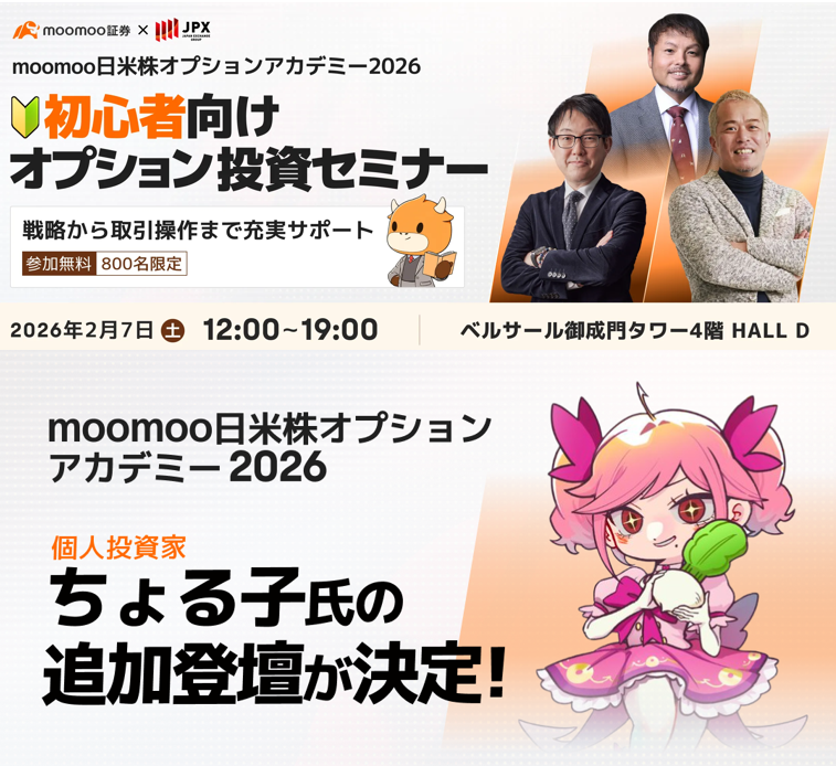 moomoo証券株式会社が開催する「moomoo 日米株オプションアカデミー 2026 〜知識ゼロから気軽にスタート!初心者向け基礎セミナー〜」が申込み受付中です。本イベントでは、かぶオプ)についての実践的な内容が学べます。