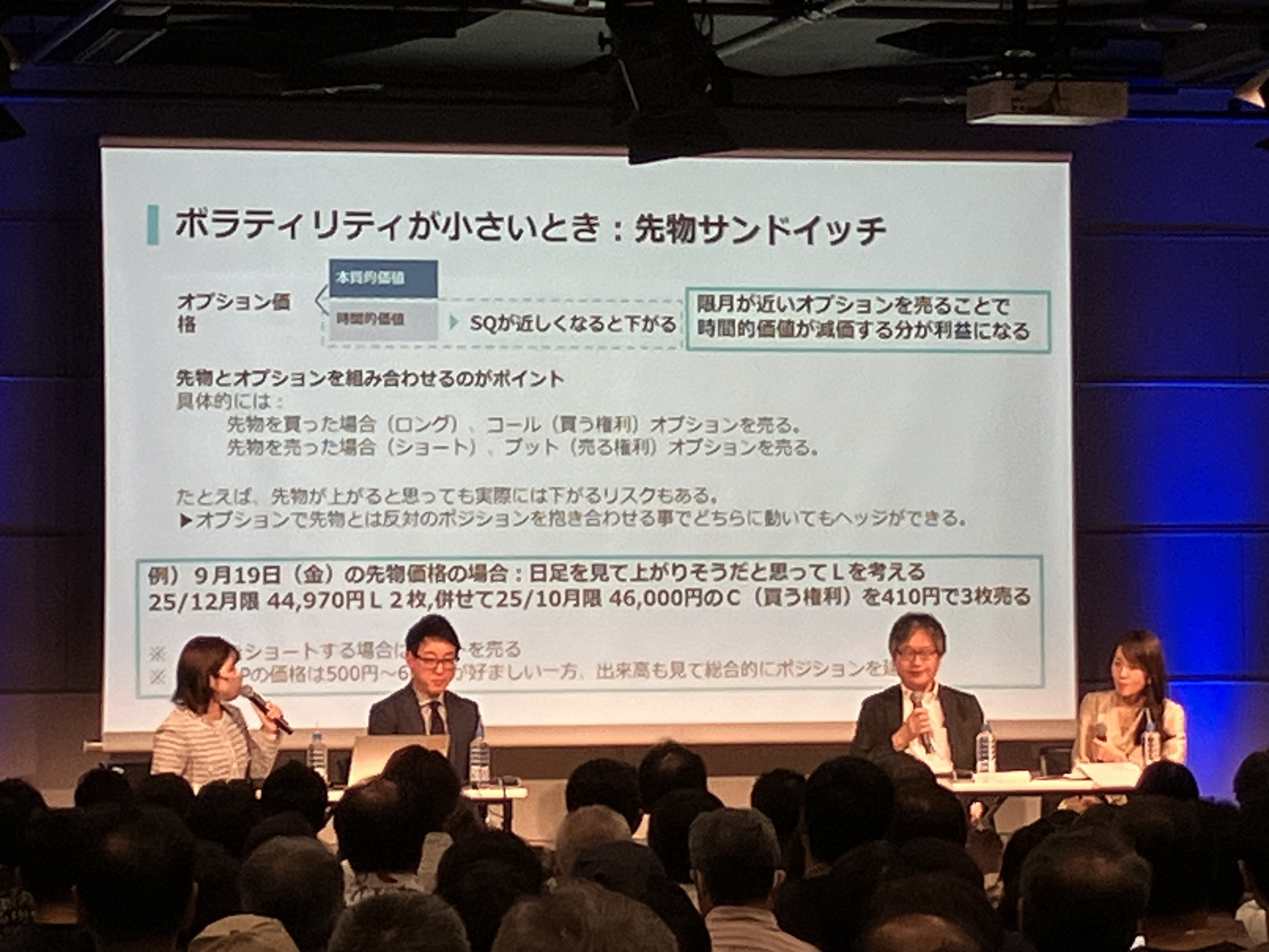日経CNBCにて2025年4~9月に放送していた大好評番組「先物・オプション道場225」の公開収録イベントを2025年9月20日(土)にハービスホール(大阪)にて、開催しました。