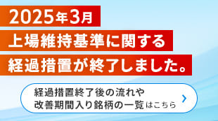 上場維持基準に関する経過措置が、2025年3月に終了しました。詳細はこちらをご覧ください。