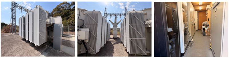 そうですね。大きな特徴として、九州電力との責任分界点(開閉所)が発電所の敷地から少し離れた場所にあります。そこから新たに建設された約5kmの送電ルートを通って九州電力の変電所へ送る仕組みです。これほどの規模になると特別高圧(66kV)での送電となるため、既存の鉄塔インフラとの整合性をとる必要があり、鉄塔17基を介して接続されています。