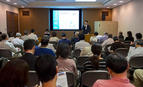 特別セミナーには野村證券投資情報部エクイティ・マーケット・ストラテジストの若生寿一氏の他、ファイナンシャルプランナーの深野康彦氏、早稲田大学大学院ファイナンス研究科教授の川口有一郎氏が登壇。アベノミクスやNISAがJリート市場に及ぼす影響、そして2013年度後半の国内株式市場の展望などについて見通しや説明が行われました。