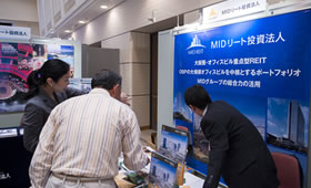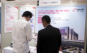 今回のフェアにブース展示または説明会をおこなったJリートの投資法人は全部で33社。各社のブースには個人投資家の方が多く訪れ、ポートフォリオや決算状況などについて熱心に質問する姿が見受けられました。また、来年1月からNISA(少額投資非課税制度)がスタートするということもあり、NISAの相談ブースも設けられました。